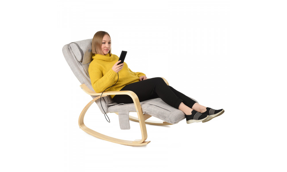Массажное кресло-качалка EVO FITNESS HOME Массажное кресло EVO FITNESS HOME легко впишется в любой интерьер благодаря компактным размерам и спокойной цветовой гамме. Способность выдерживать вес до 150 кг делает доступным кресло EVO FITNESS HOME для людей с любыми габаритами, а три уровня угла наклона подставки для ног обеспечивает оптимальный комфорт во время массажа. Для обивки кресла используется износоустойчивая гипоаллергенная ткань со структурой льна. Каркас и подлокотники кресла выполнены из массива бука. Интегрированная в кресло массажная система позволяет избавиться от мышечного и нервного напряжения, улучшить циркуляцию крови и обменные процессы в организме уже после первого использования. 10 Массажных роликов располагаются в области шеи и спины. Это позволяет интенсивно и глубоко прорабатывать спинной отдел - от плечевой зоны до ягодиц, и шейно-воротниковую область. Два вида массажа – вибрационный и Шиацу, в сочетании с прогревом спины обеспечивают наилучший эффект от применения кресла EVO FITNESS HOME. Для лучшего комфорта массажная подушка в области шеи регулируется по высоте. Управлять креслом легко - пульт управления на русском языке интуитивно понятен и удобен в использовании. Встроенный таймер и автоматическая программа делает управление креслом еще более простым – достаточно нажать одну кнопку.